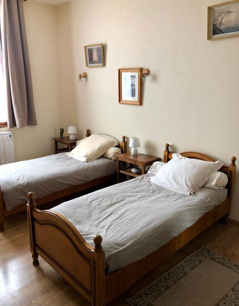 dispose de 2 lits individuels 90x190. La salle de douche et les toilettes sont sur le palier.